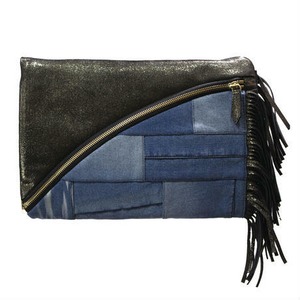 SILVETA JEANSとリアルレザーが織りなすコンビネーションが美しいクラッチバッグ。職人によるハンドメイドによるデニムパッチワークと、リアルレザーの個々がもつ革の個性により、一つとして全く同じものは存在しない、唯一無二のバッグコレクションが<UNA SOLA>です。